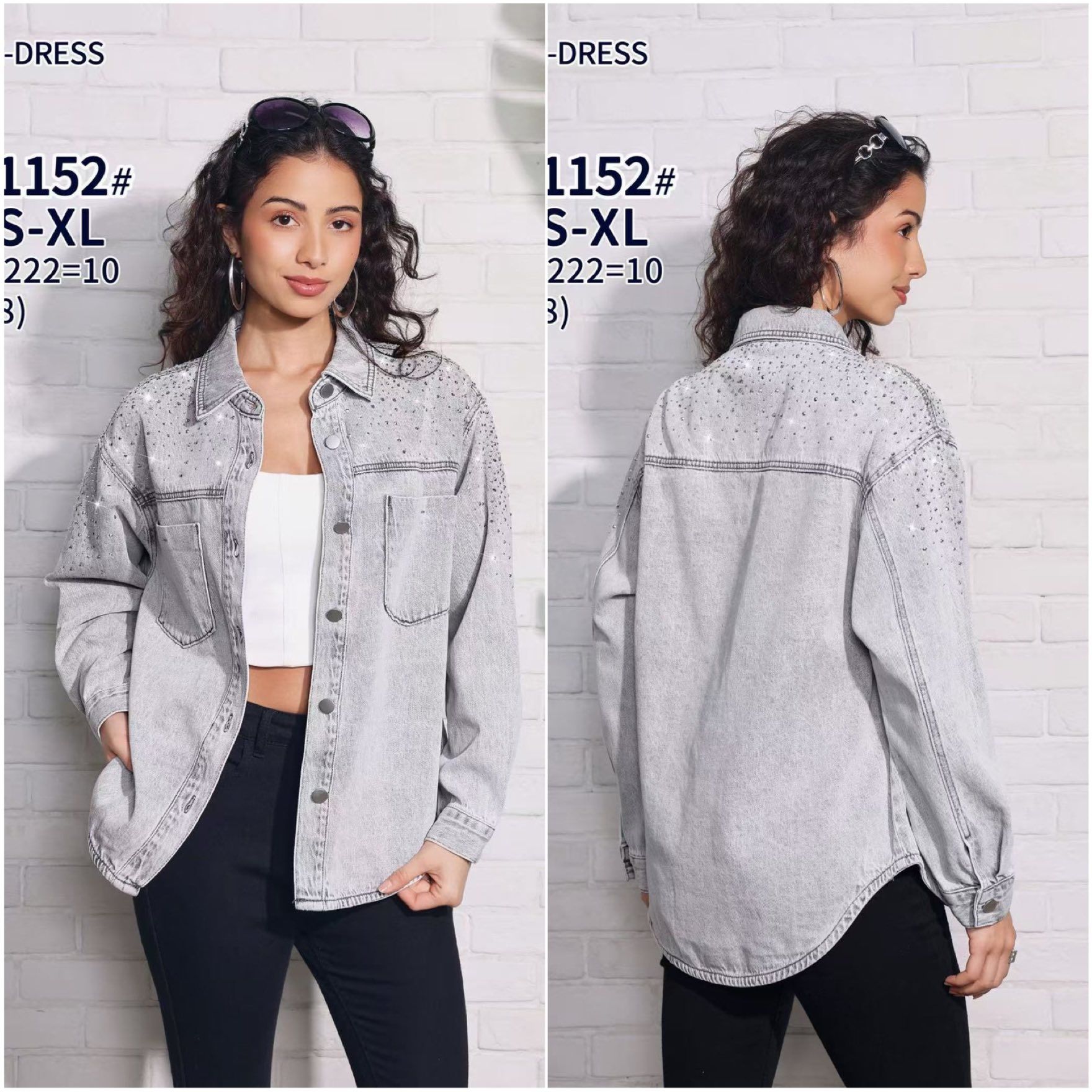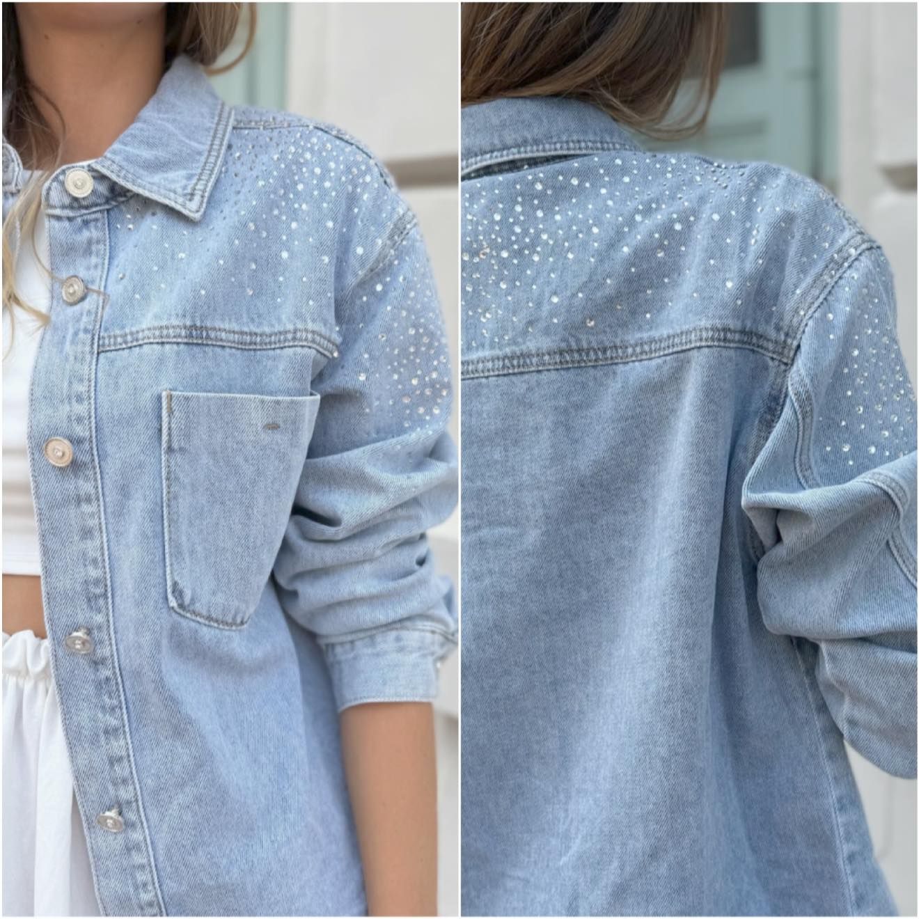 DŽÍNOVÁ BUNDA KOŠILOVÉHO STŘIHU S KAMÍNKY