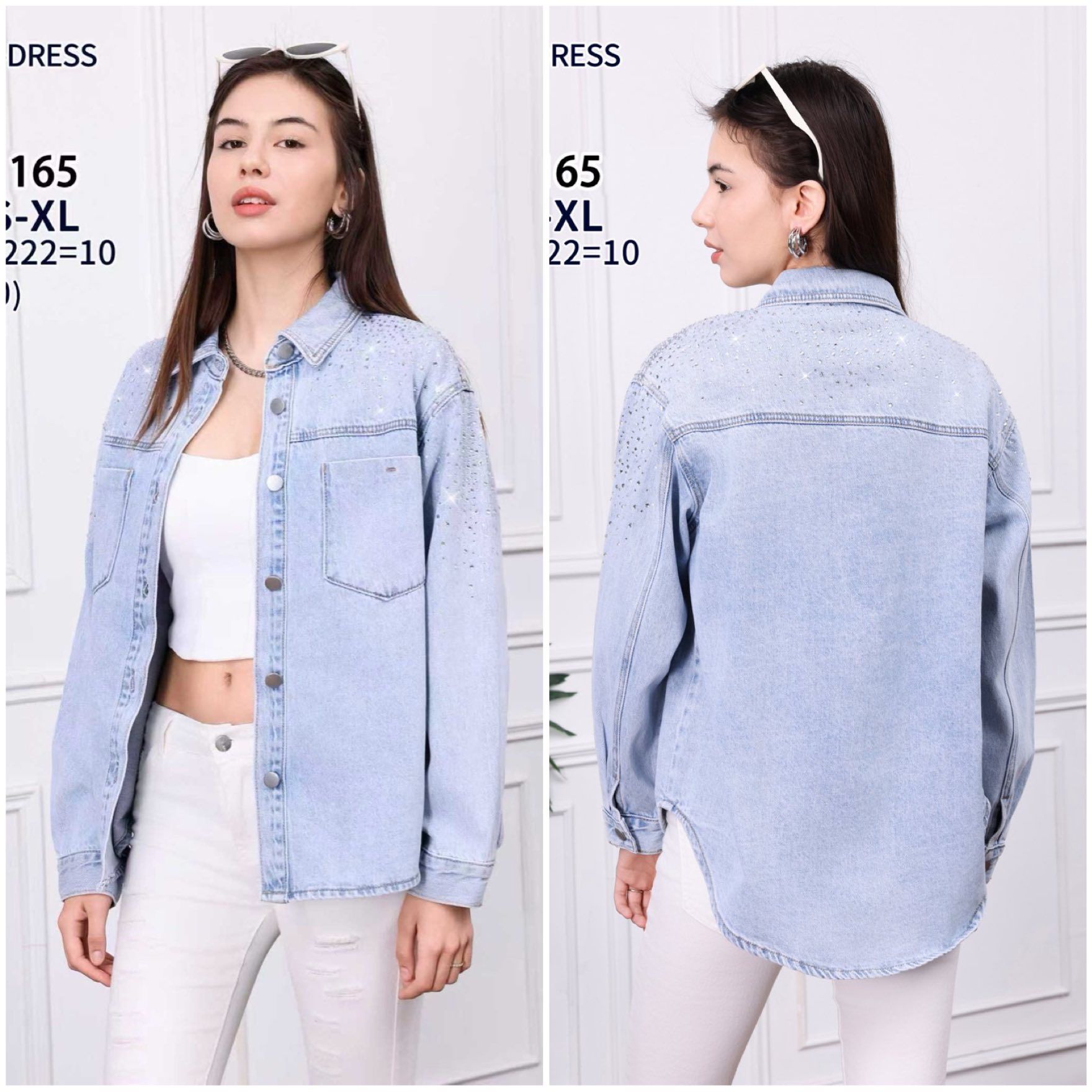 DŽÍNOVÁ BUNDA KOŠILOVÉHO STŘIHU S KAMÍNKY 380kc 12ks
