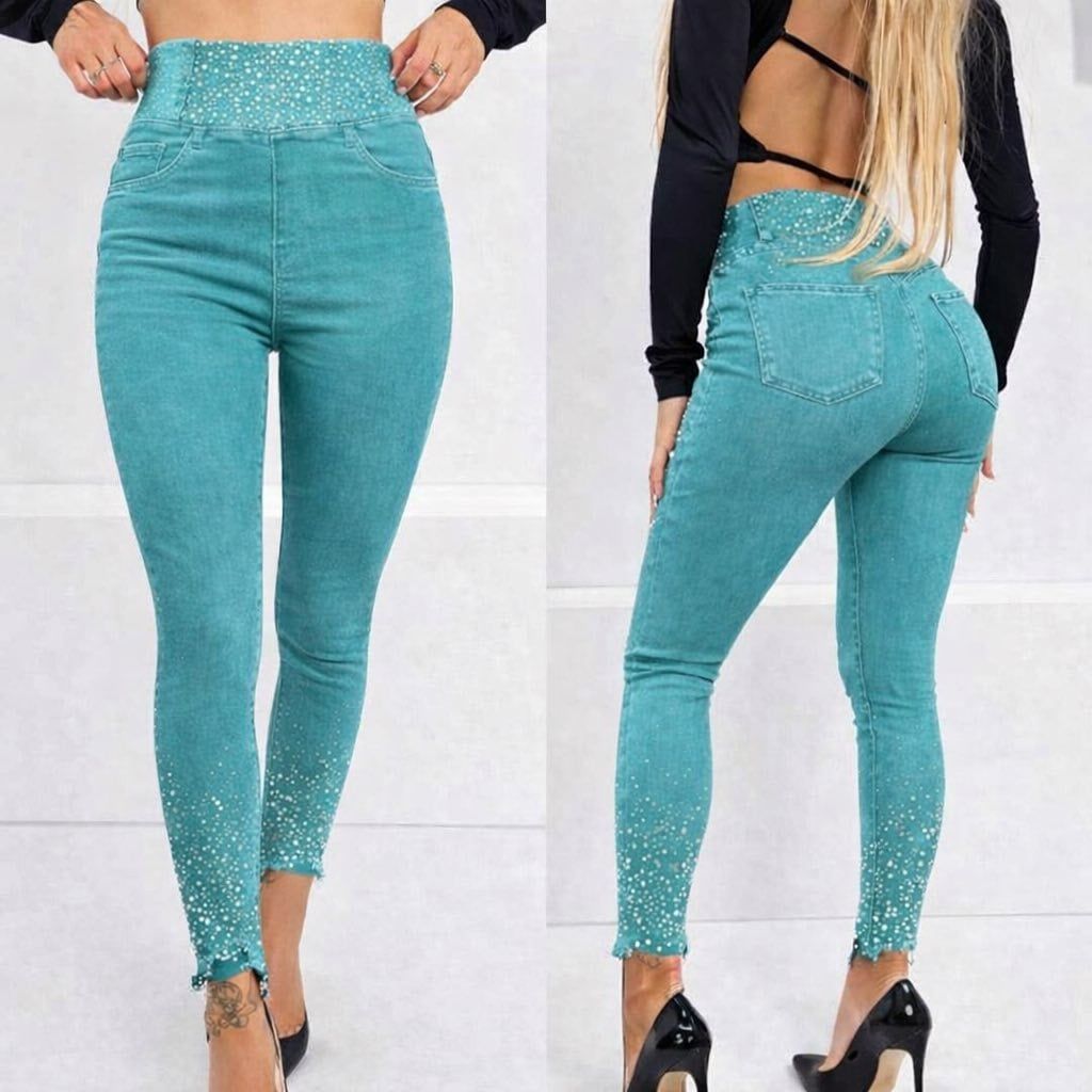 džíny s ozdobnými kamínky