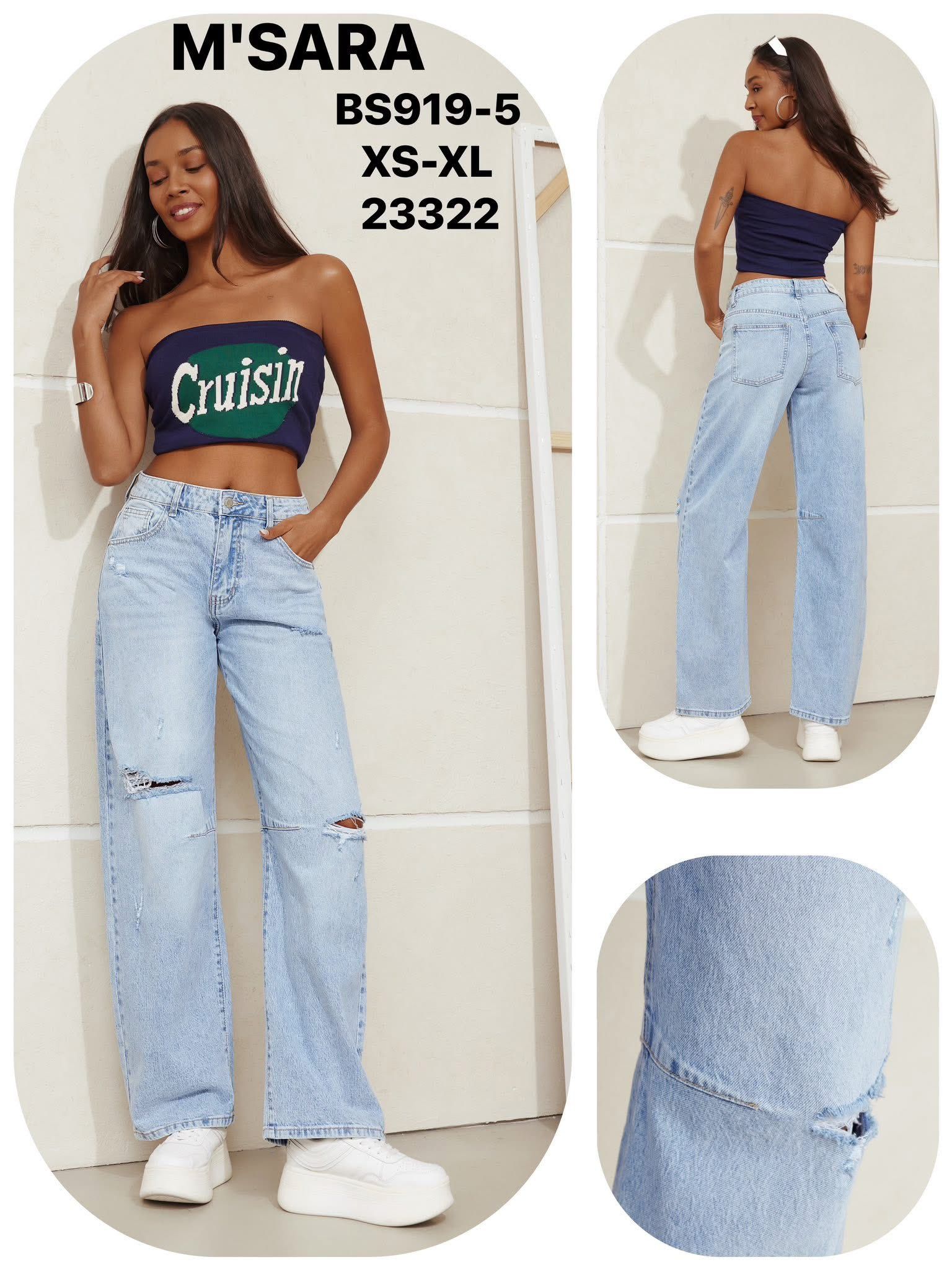 Široké dámské džíny s dírami 285kc 12ks